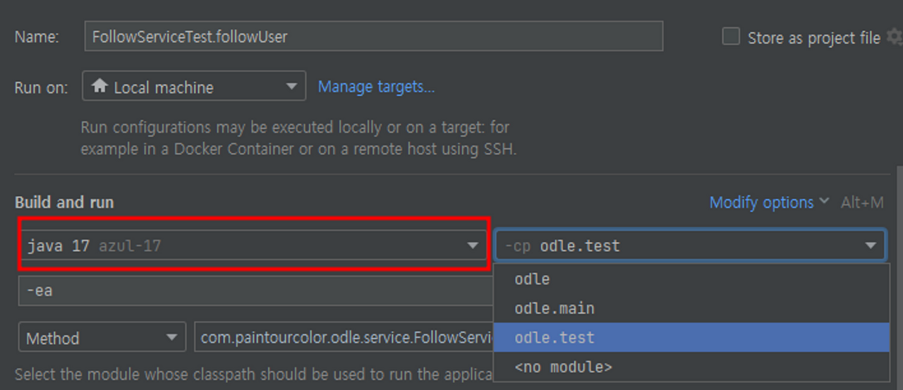 odle.test의 빌드가 java 8로 되어 있었다.